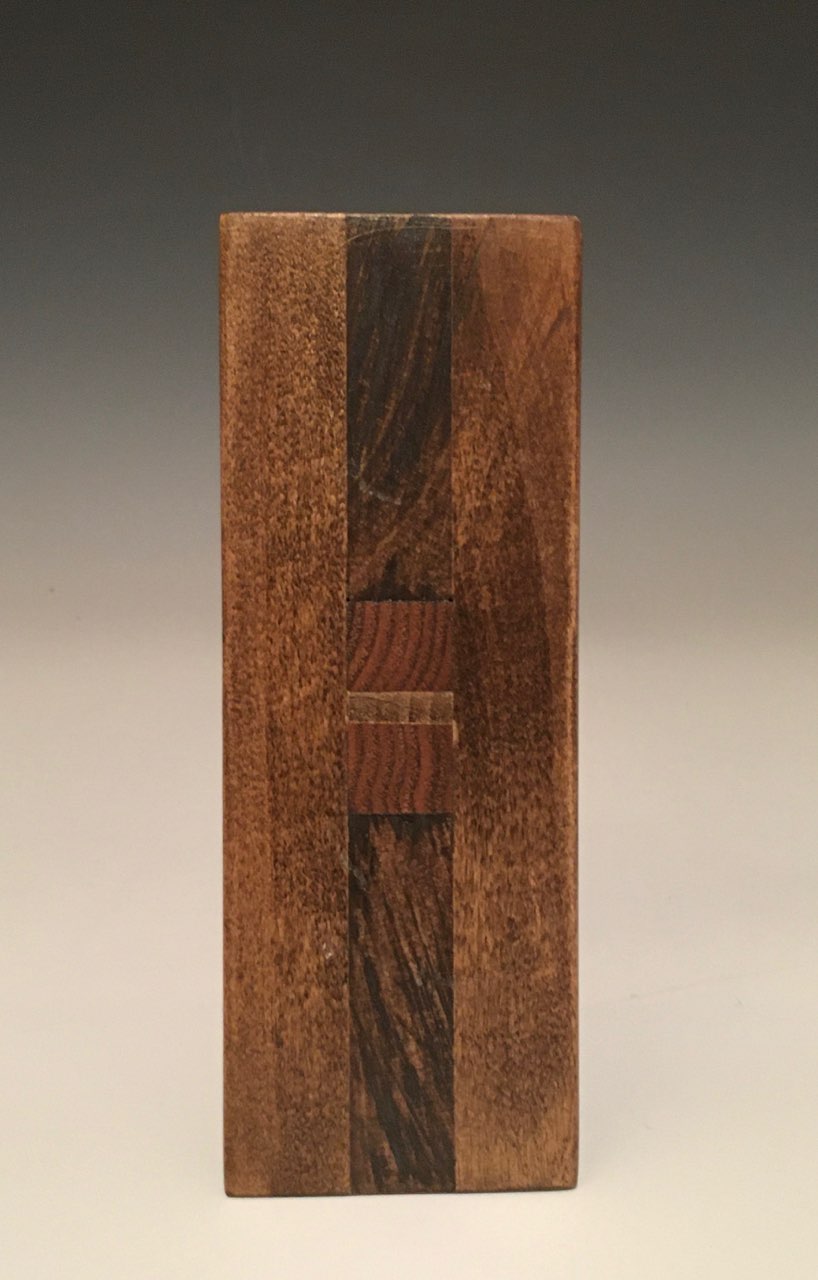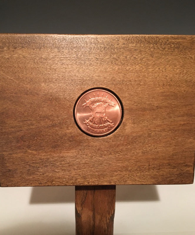 This mallet is made of hickory and cherry with a in-lay coin on both sides of the mallet head.